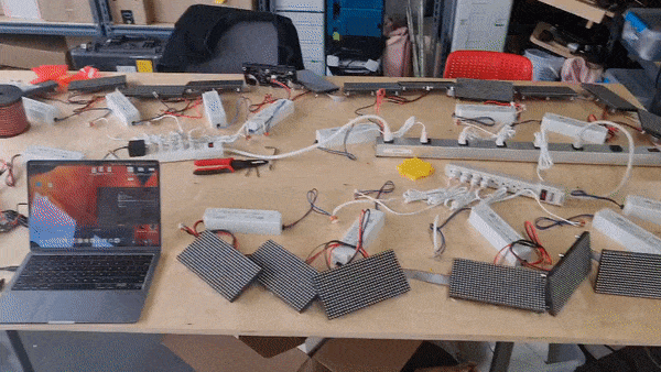 Utilizing Adafruit Matrix Portal S3 and 26 pieces of 16x32 RGB Matrix chained together. The system is programmed in Circuit Python, linked Google Sheet to Adafruit IO using IFTTT, allowing users to input texts in Google Form to scroll on the display.