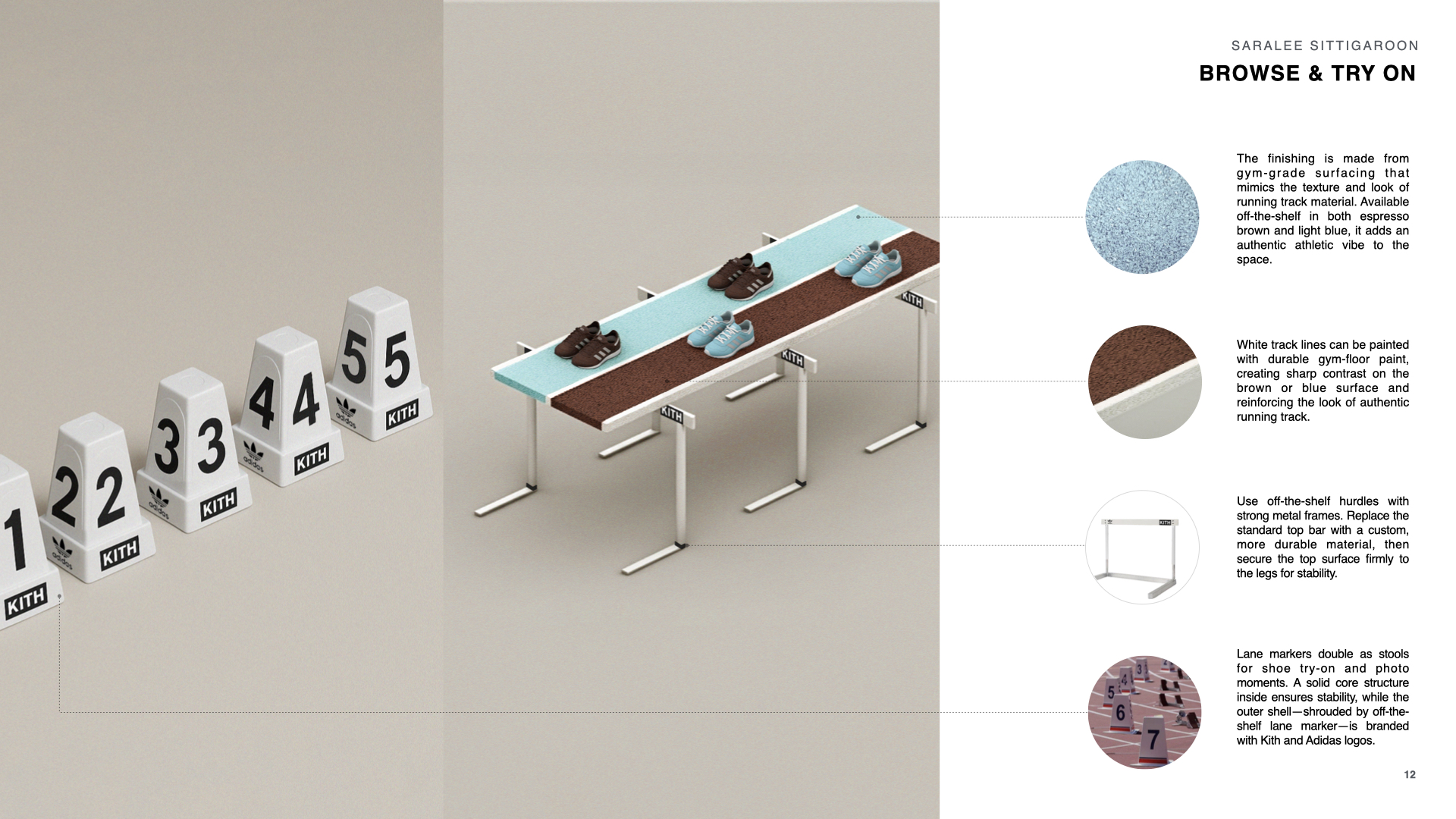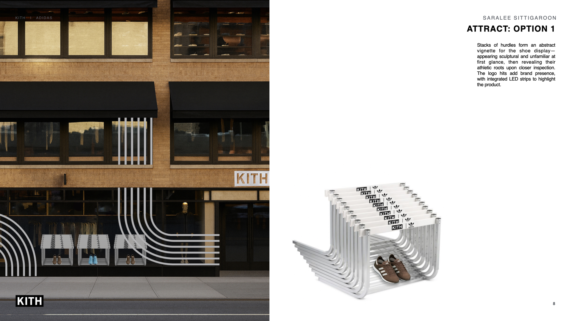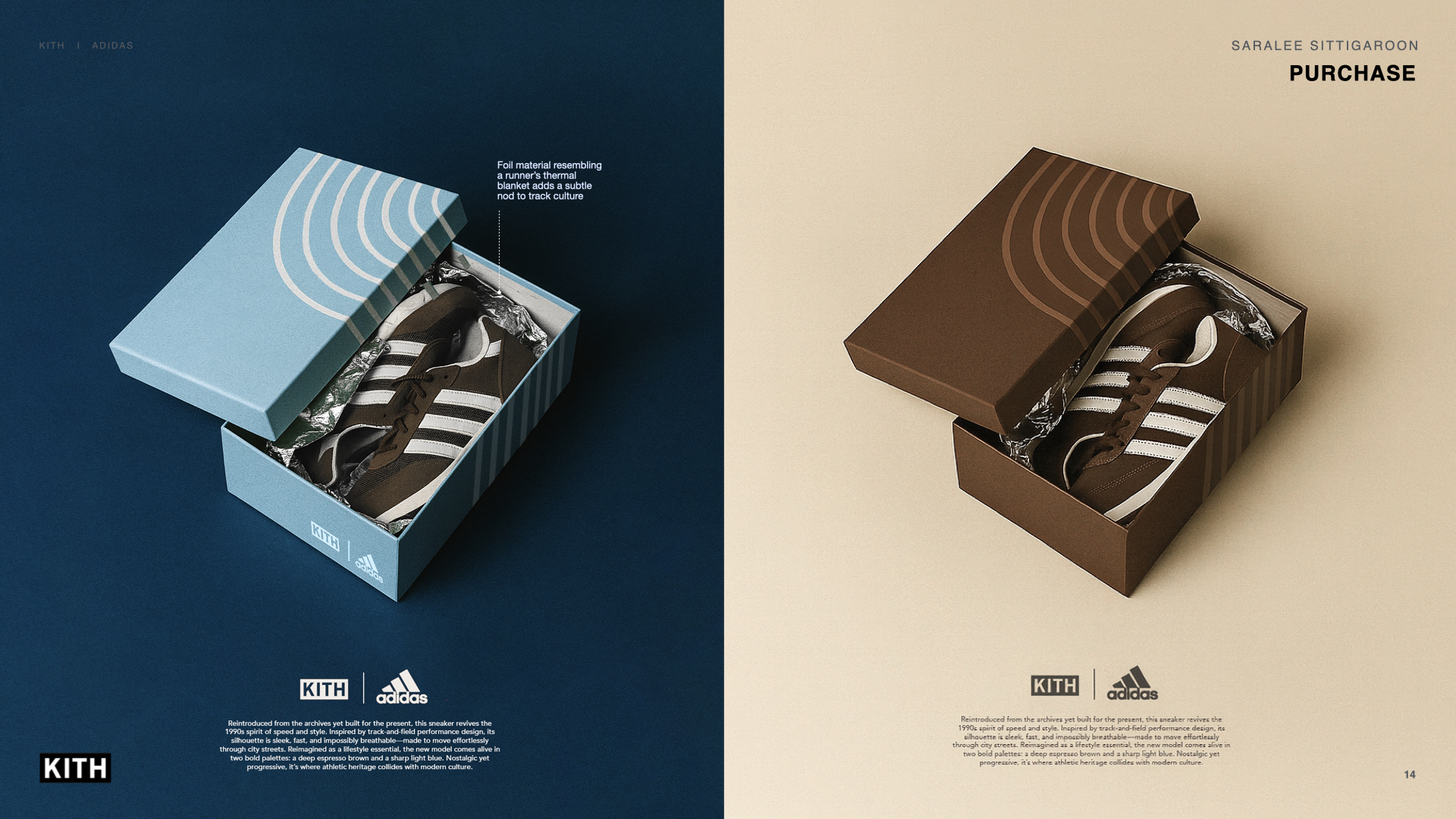In-store activation for a collaborative KITH and Adidas sneaker. The sneaker was introduced in 19902 as a lifestyle shoe inspired by track and field performance shoes. The shoe has a sleek, fast, breathable feel and comes in 2 colors-expresso brown and light blue.